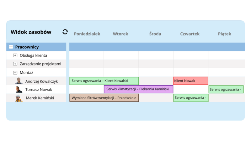 W wielu firmach stres związany z planowaniem nie wynika z braku doświadczenia, ale z rozproszenia informacji. Pracownicy wprowadzają zmiany w Excelu, zespoły komunikują się przez WhatsApp, terminy warsztatów są zapisywane na kartkach papieru, a na tablicy wisi nieaktualny tygodniowy harmonogram. Skutkuje to podwójnymi rezerwacjami, opóźnieniami i niepotrzebnymi rundami koordynacyjnymi - zwłaszcza rano.
